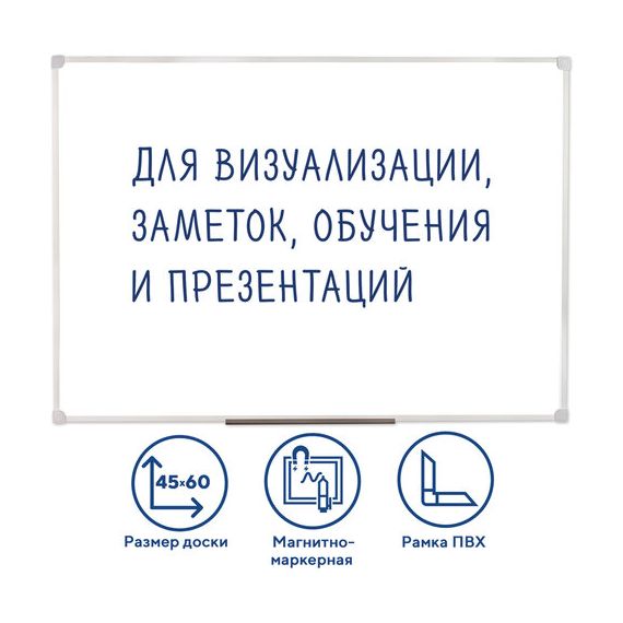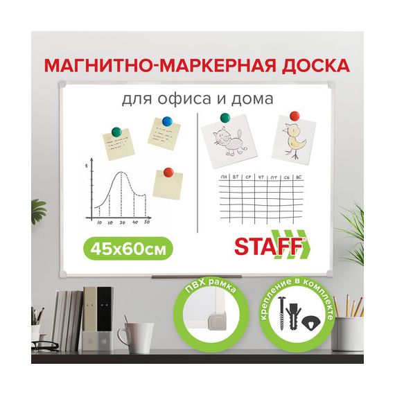 Доска магнитно-маркерная 45х60 см, ПВХ-рамка, ГАРАНТИЯ 10 ЛЕТ, РОССИЯ, STAFF, 236157