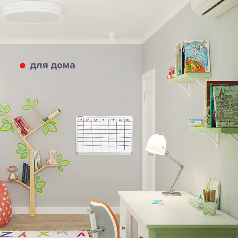 Лаковое покрытие предназначено для письма специальными маркерами для белой доски, а металлическая поверхность позволяет размещать информацию при помощи магнитов. Доска размером 60х90 см имеет укрепленные пластиковые уголки. Профиль придает изделию дополнительную прочность и современный стильный внешний вид. Полочка для аксессуаров и элементы крепления входят в комплект. При должном уходе за рабочей поверхностью доски при помощи чистящей жидкости-спрея и стирателей BRAUBERG поверхность магнитно-маркерной доски прослужит более 10 лет. Для защиты рабочей поверхности доски на нее нанесена защитная пленка. Перед началом работы – удалить защитную пленку.