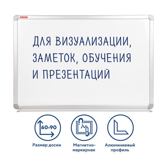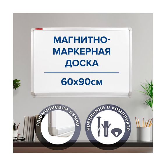 Доска магнитно-маркерная 60х90 см, улучшенная алюминиевая рамка, ГАРАНТИЯ 10 ЛЕТ, BRAUBERG Premium, 231714