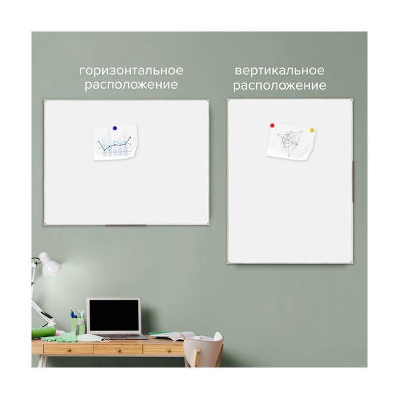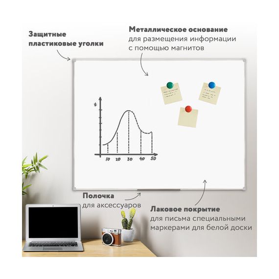 Лаковое покрытие предназначено для письма специальными маркерами для белой доски, а металлическая поверхность позволяет размещать информацию при помощи магнитов. Доска имеет укрепленные пластиковые уголки, которые позволяют скрыть места крепления к стене. Размер - 90х120 см. Пластиковый профиль придает изделию дополнительную прочность и современный стильный внешний вид. Полочка для аксессуаров и элементы крепления входят в комплект. Возможность горизонтального и вертикального крепления. Надежная упаковка: термоусадочная пленка и коробка. Перед началом работы – удалить защитную пленку. При должном уходе за рабочей поверхностью доски при помощи чистящей жидкости-спрея и стирателей BRAUBERG поверхность магнитно-маркерной доски прослужит более 10 лет.