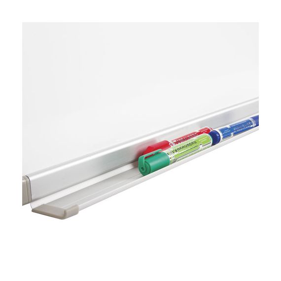 Лаковое покрытие предназначено для письма специальными маркерами для белой доски, а металлическая поверхность позволяет размещать информацию при помощи магнитов. Доска размером 90х180 см имеет укрепленные пластиковые уголки. Профиль придает изделию дополнительную прочность и современный стильный внешний вид. Полочка для аксессуаров и элементы крепления входят в комплект. Для защиты рабочей поверхности доски на нее нанесена защитная пленка. Перед началом работы необходимо ее удалить. При должном уходе за рабочей поверхностью доски при помощи чистящей жидкости-спрея и стирателей BRAUBERG поверхность магнитно-маркерной доски прослужит более 10 лет.