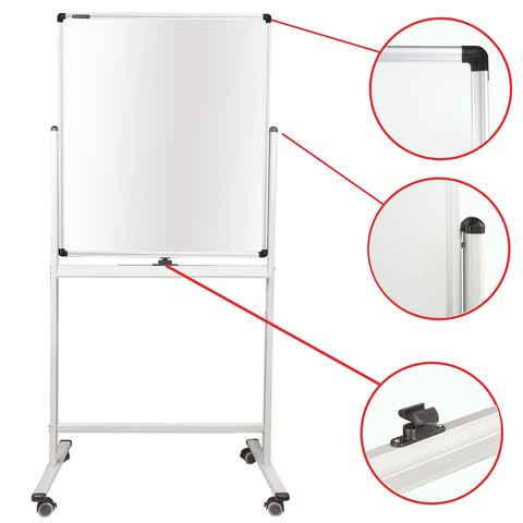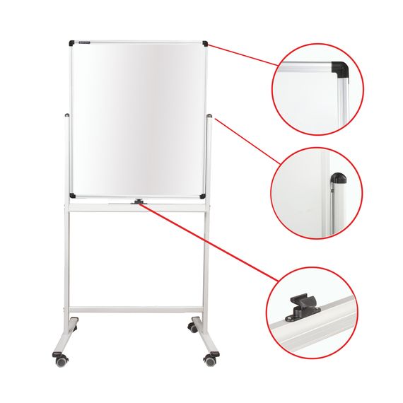 Лаковое покрытие предназначено для письма специальными маркерами для белой доски, а металлическая поверхность позволяет размещать информацию при помощи магнитов. Вращается в горизонтальной плоскости на 360 градусов. Перемещается на колесиках. Алюминиевая рама придает доске необходимую прочность. Элементы крепления входят в комплект. Размер - 90х60 см. При должном уходе за рабочей поверхностью доски при помощи чистящей жидкости-спрея и стирателей BRAUBERG поверхность магнитно-маркерной доски прослужит более 10 лет.
