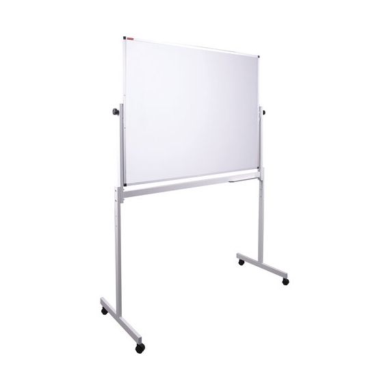 Лаковое покрытие предназначено для письма специальными маркерами для белой доски, а металлическая поверхность позволяет размещать информацию при помощи магнитов. Вращается в горизонтальной плоскости на 360°. Перемещается на колесиках. Алюминиевая рама придает доске необходимую прочность. Подставка для канцелярских принадлежностей позволяет всегда держать под рукой магниты, маркеры, стиратели и другие необходимые предметы. Элементы крепления входят в комплект. Защитная пленка предупреждает появление царапин, потертостей и сколов на рабочей поверхности доски при транспортировке и хранении продукции (перед началом работы необходимо удалить защитную плёнку). Размер: 90х120 см.