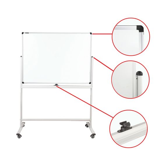 Лаковое покрытие предназначено для письма специальными маркерами для белой доски, а металлическая поверхность позволяет размещать информацию при помощи магнитов. Вращается в горизонтальной плоскости на 360 градусов. Легко перемещается на стенде. Алюминиевая рама придает доске необходимую прочность. Элементы крепления входят в комплект. Размер - 90х120 см. При должном уходе за рабочей поверхностью доски при помощи чистящей жидкости-спрея и стирателей BRAUBERG поверхность магнитно-маркерной доски прослужит более 10 лет.