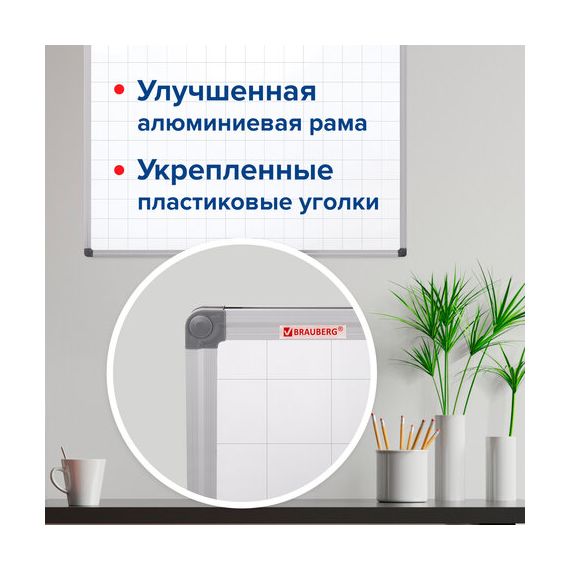 Доска магнитно-маркерная В КЛЕТКУ, 60х90 см, алюминиевая рамка, BRAUBERG "Extra", 237563