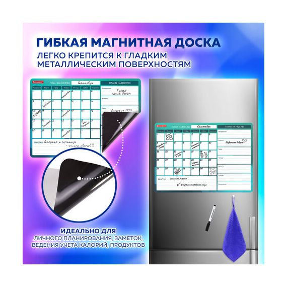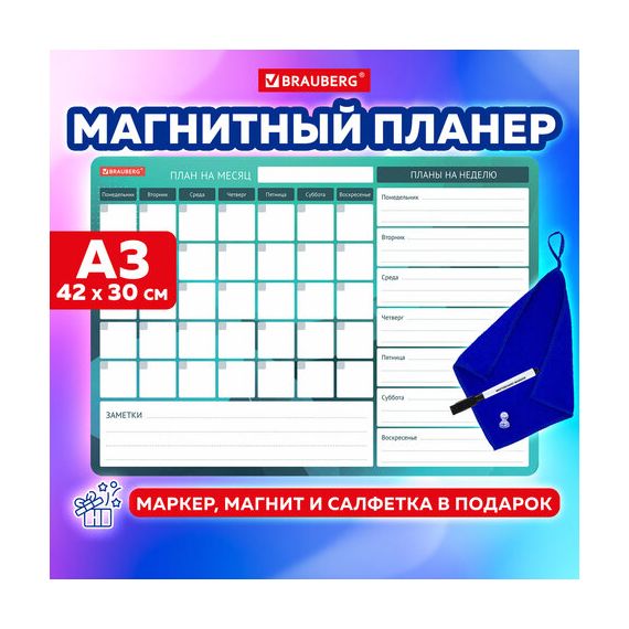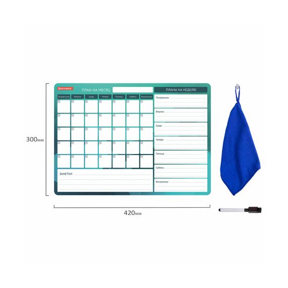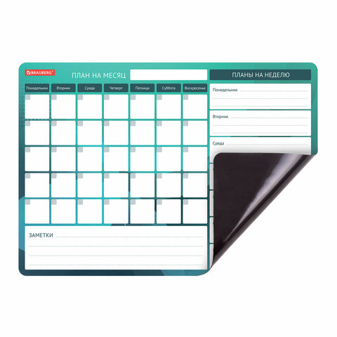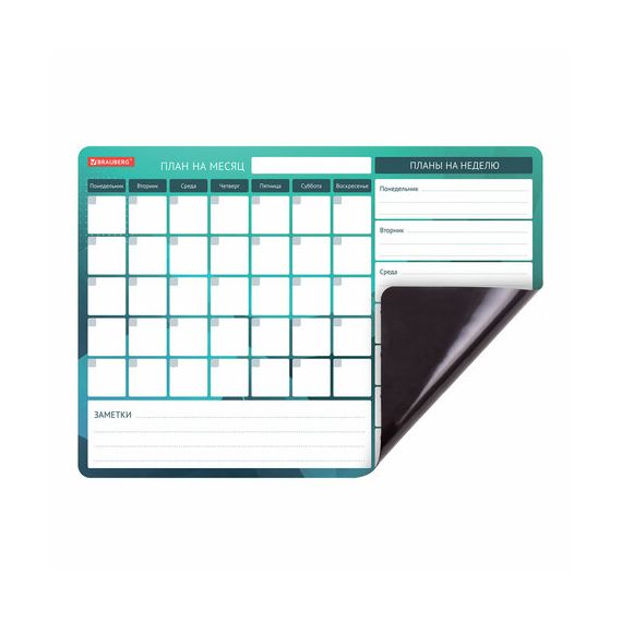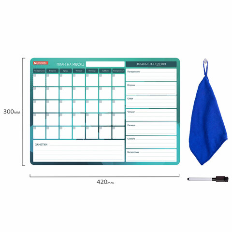 Планинг магнитный "Месяц и Неделя" на холодильник 42х30 см, с маркером и салфеткой, BRAUBERG, 237854