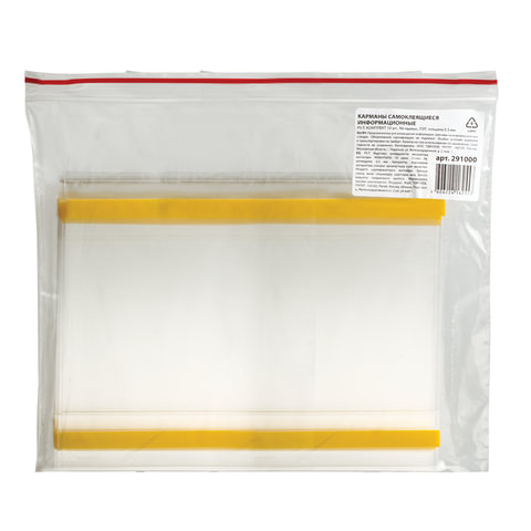 Карманы информационные самоклеящиеся PS-T, А6, горизонтальные, КОМПЛЕКТ 10 шт., ПЭТ, толщина 0,3 мм, 171881