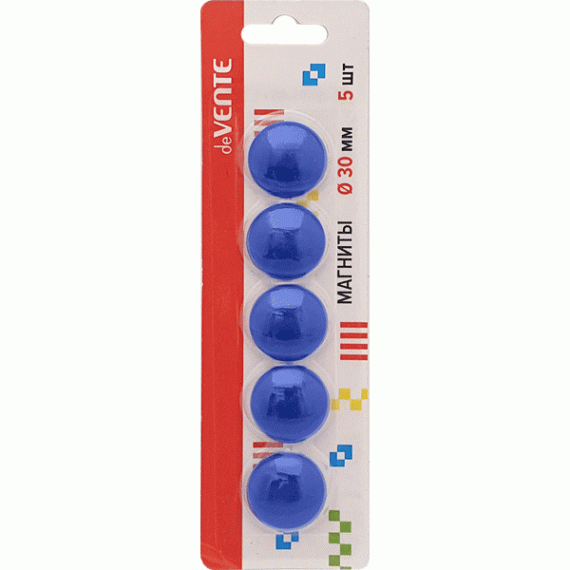 Магнит для доски офисной "deVENTE" Ø 30 мм, 5 шт, цвет синий, в картонном блистере
