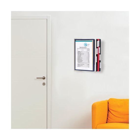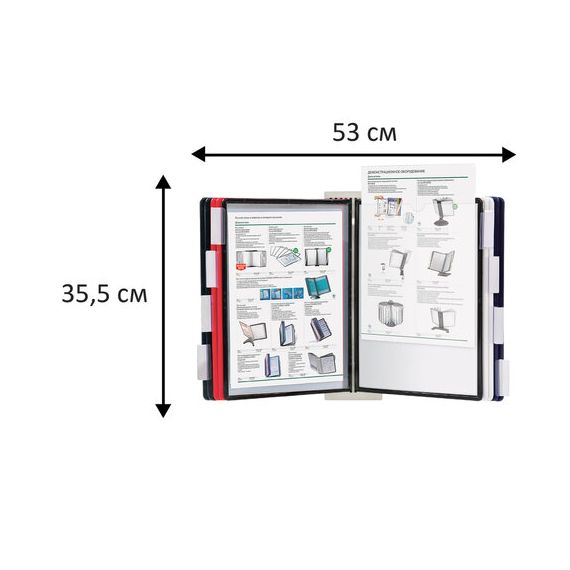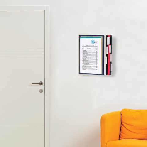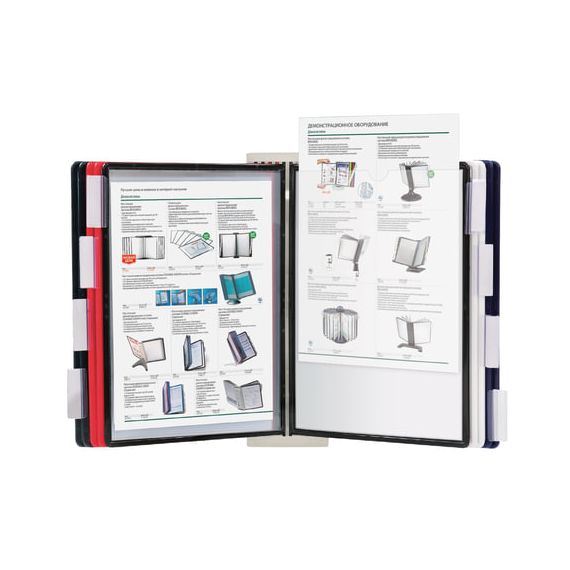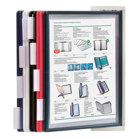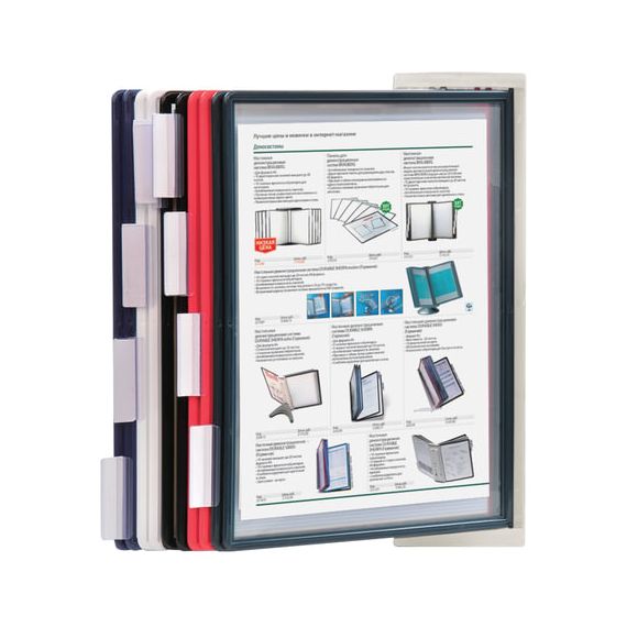 10 двухсторонних цветных панелей позволяют разместить одновременно до 20 листов формата А4. Прочные и гибкие литые рамки панелей изготовлены из полипропилена, пригодного для повторной переработки и дальнейшего использования. Демопанели оснащены съемными ярлычками-табуляторами для маркировки и удобного поиска нужной информации. Карман демопанели из прочного прозрачного материала с антибликовым покрытием надежно защитит документы от внешних воздействий. Винты для крепления демосистемы к стене поставляются в комплекте. Стильный серый цвет пластикового корпуса подойдёт для большинства современных интерьеров.