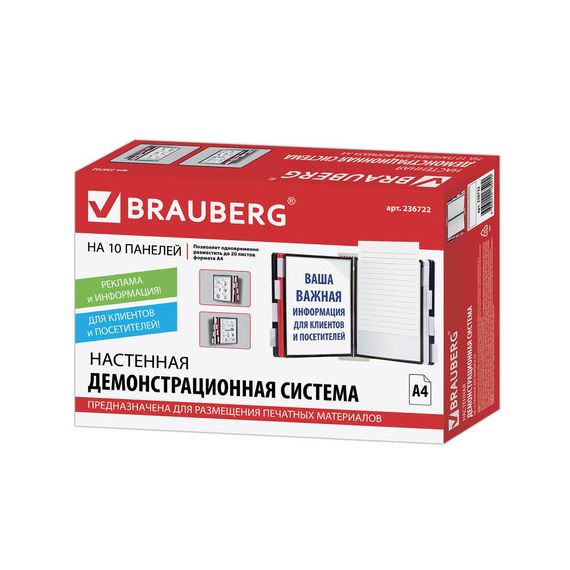Демосистема настенная с 10 цветными панелями А4, серая, BRAUBERG "SOLID", 236722