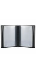 30 двухсторонних панелей серого цвета позволяют разместить одновременно до 60 листов формата А4. Прочные и гибкие литые рамки панелей изготовлены из полипропилена, пригодного для повторной переработки и дальнейшего использования. Демопанели оснащены съемными ярлычками-табуляторами для маркировки и удобного поиска нужной информации. Карман демопанели из прочного прозрачного материала с антибликовым покрытием надежно защитит документы от внешних воздействий. Устойчивое основание и поворот на 360 градусов гарантируют удобство пользователю и быстрый доступ к документу. Стильный черный цвет пластикового корпуса подойдёт для большинства современных интерьеров.