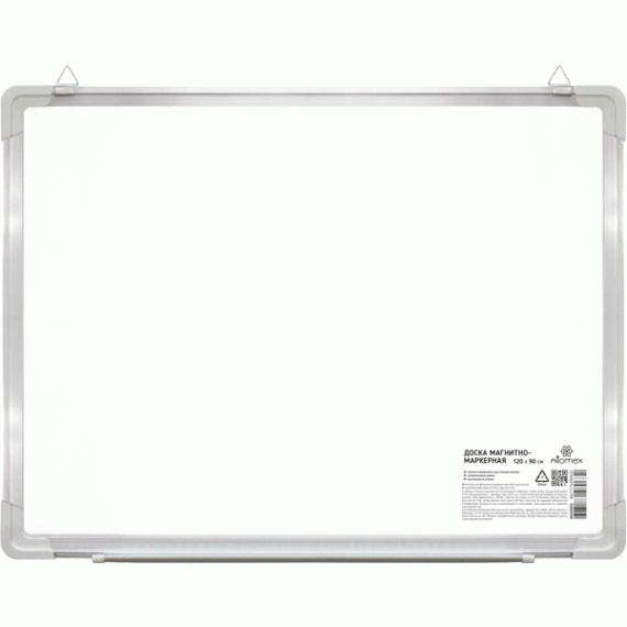 Доска магнитно-маркерная белая "Attomex" 1200x900 мм, с гальванизированным стальным листом на задней стороне, алюминиевая полка для маркеров, открытое крепление, термоусадочная пленка