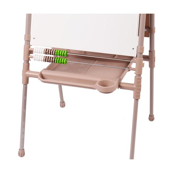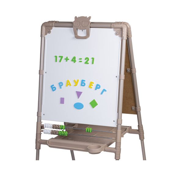 Поверхность мольберта белого цвета предназначена для рисования специальным маркером для белой доски, а также для размещения магнитов. Черная поверхность подходит для рисования мелками. Для детей старше 3-х лет. Регулируется по высоте от 73,5 до 107,5 см для удобства использования детьми разного возраста и роста. Размер рабочей поверхности – 53х46 см. Цвет – бежевый.