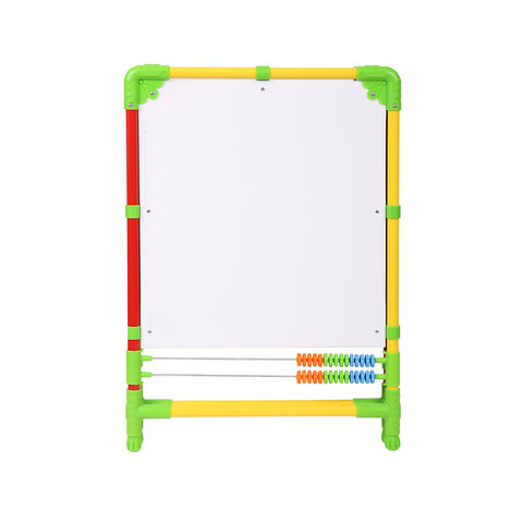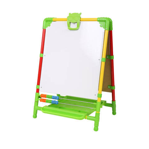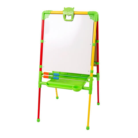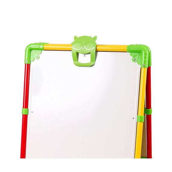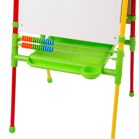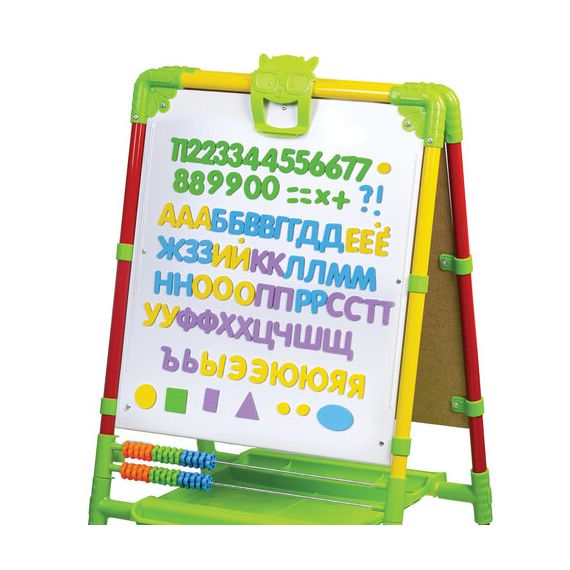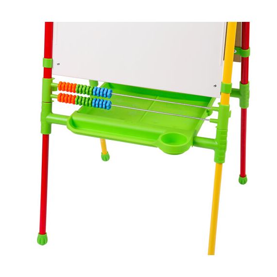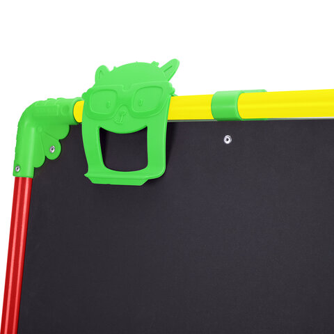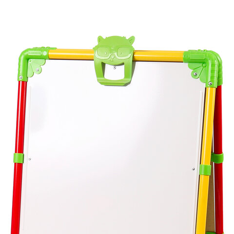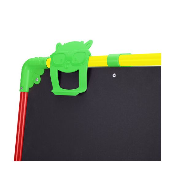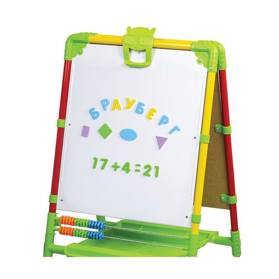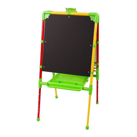 Поверхность мольберта белого цвета предназначена для рисования специальным маркером для белой доски, а также для размещения магнитов; черная поверхность - для рисования мелками. Для детей старше 3-х лет. Регулируется по высоте от 73,5 до 107,5 см для удобства использования детьми разного возраста и роста. Размер рабочей поверхности: 53х46 см. Цвет: светофор.