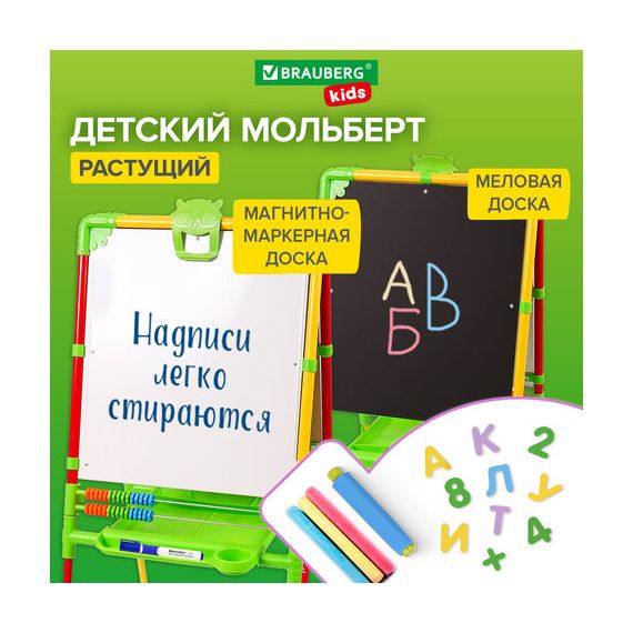 Мольберт растущий для мела/магнитно-маркерный, 53х46 см, BRAUBERG "NIKA KIDS", светофор, 238051