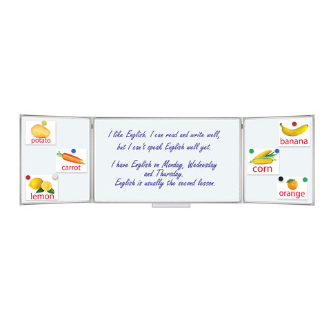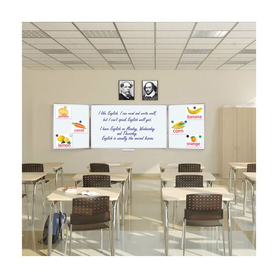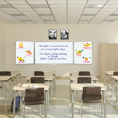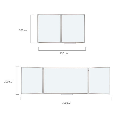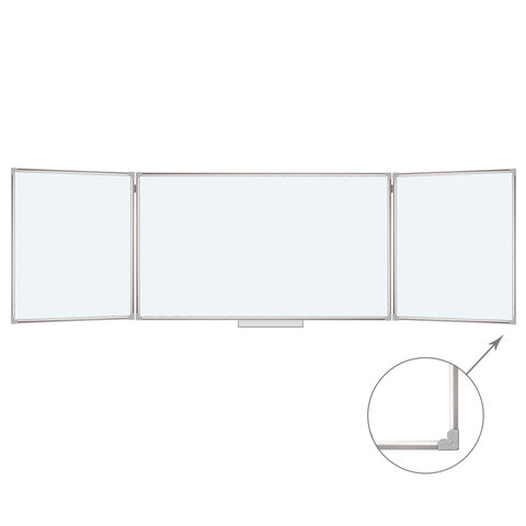 Доска магнитно-маркерная 3-х элементная 100х150/300 см, 5 рабочих поверхностей, белая, BRAUBERG, 231708