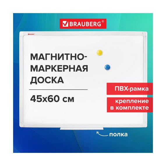 Доска магнитно-маркерная 45х60 см, ПВХ-рамка, BRAUBERG "Standard", 237560