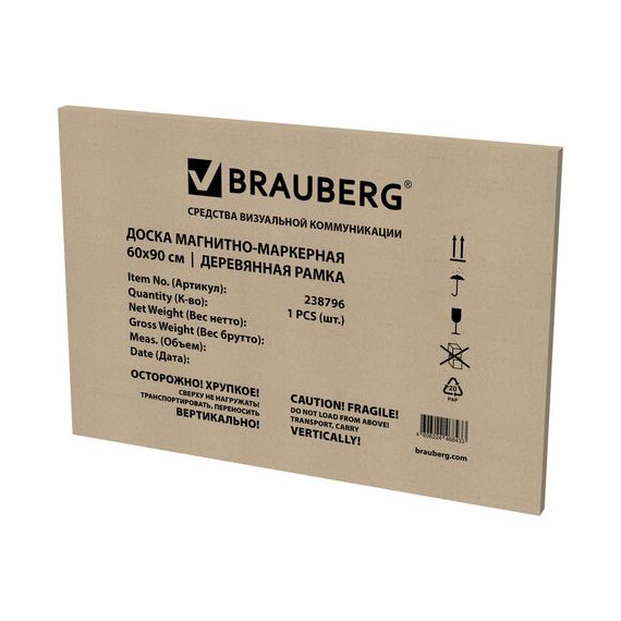 Надежная упаковка – термоусадочная пленка и гофрированный короб с усиленными прокладками. При должном уходе за рабочей поверхностью доски при помощи чистящей жидкости-спрея и стирателей BRAUBERG поверхность магнитно-маркерной доски прослужит более 10 лет.