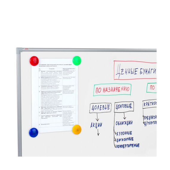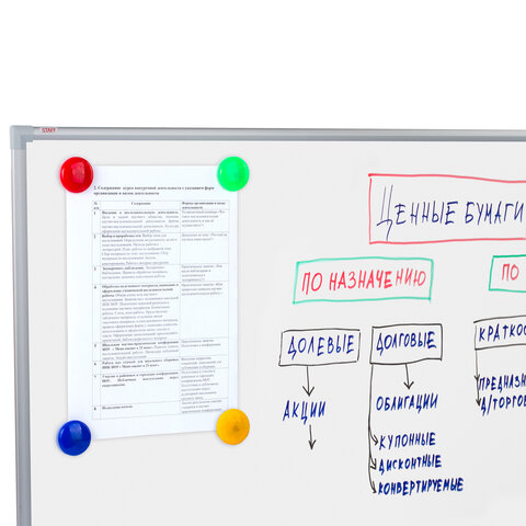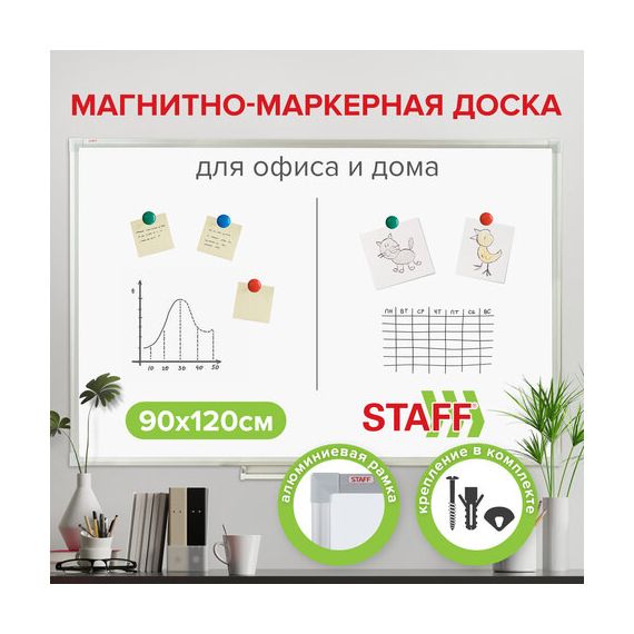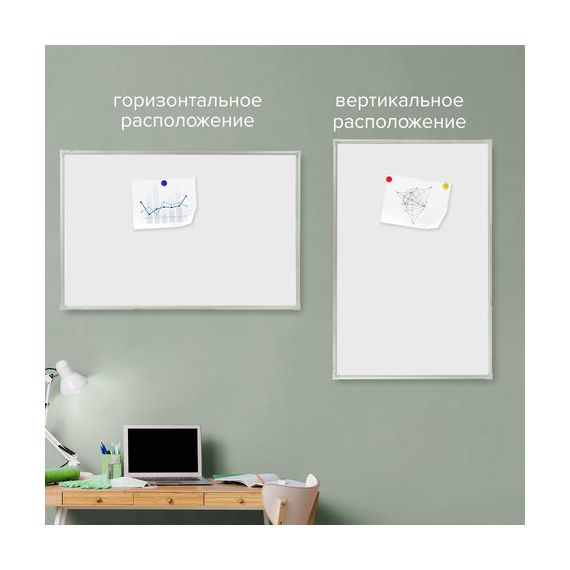 Лаковое покрытие предназначено для письма специальными маркерами для белой доски, а металлическая поверхность позволяет размещать информацию при помощи магнитов. Доска имеет укрепленные пластиковые уголки, которые позволяют скрыть места крепления к стене. Размер - 90х120 см. Профиль придает изделию дополнительную прочность и современный стильный внешний вид. Безопасная полочка для аксессуаров (острые углы металлической полочки закрыты пластиковыми элементами) и элементы крепления входят в комплект. Возможность горизонтального и вертикального крепления. Надежная упаковка: каждая доска упаковывается в индивидуальную коробку. Перед началом работы убедитесь в отсутствии защитной плёнки. При должном уходе за рабочей поверхностью доски при помощи чистящей жидкости-спрея и стирателей от нашей компании поверхность магнитно-маркерной доски прослужит более 10 лет.