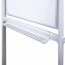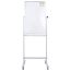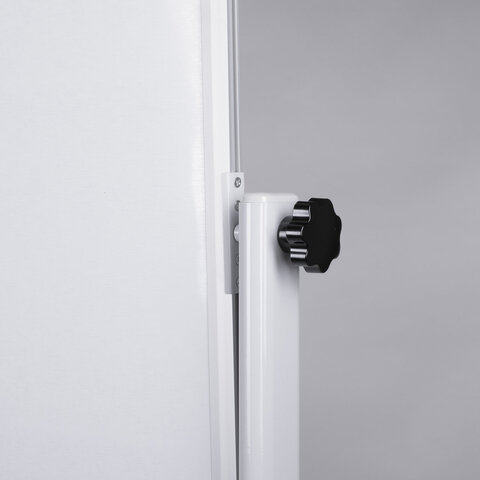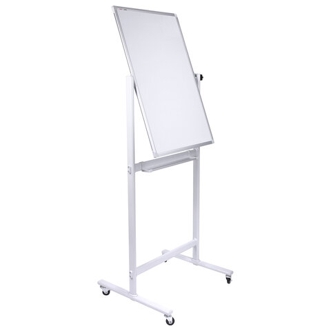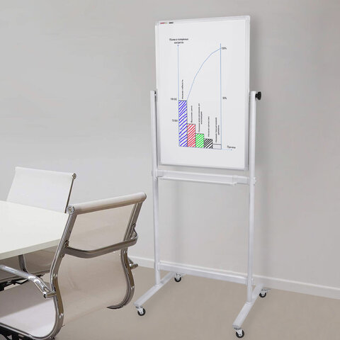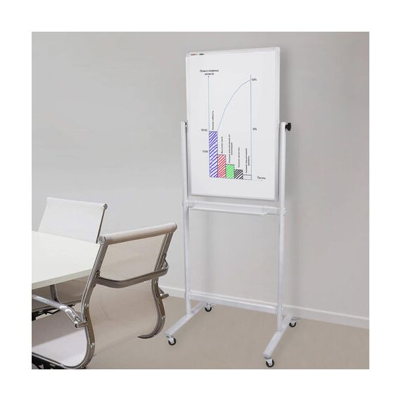 Лаковое покрытие предназначено для письма специальными маркерами для белой доски. Металлическая поверхность позволяет размещать информацию при помощи магнитов. Вращается в горизонтальной плоскости на 360°. Перемещается на колесиках. Элементы крепления и лоток для принадлежностей входят в комплект. Размер доски – 90х60 см. Перед началом работы необходимо удалить защитную пленку с рабочей поверхности доски.