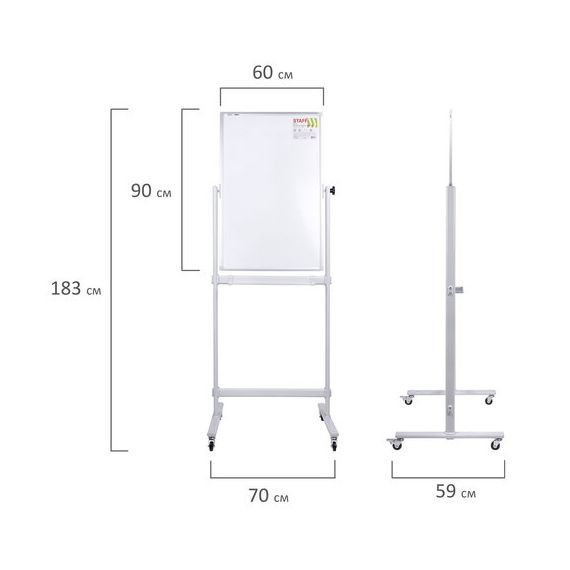 Доска магнитно-маркерная НА СТЕНДЕ 60х90 см, 2-сторонняя, STAFF, 238013