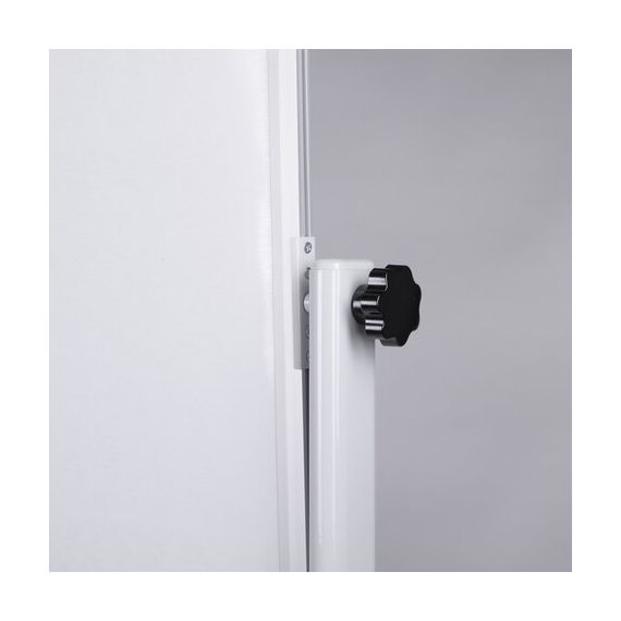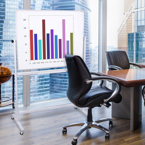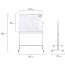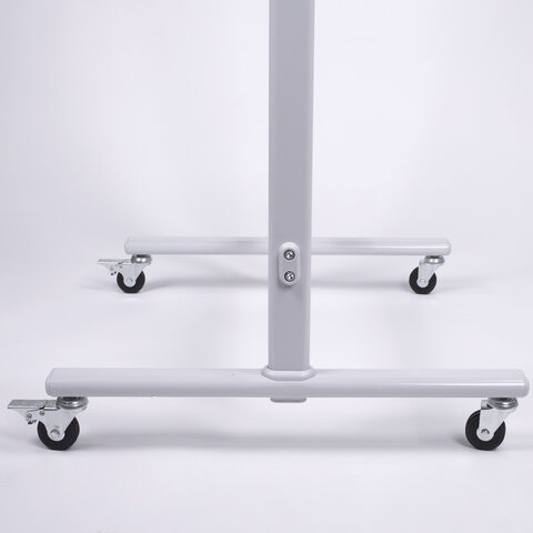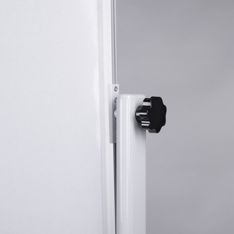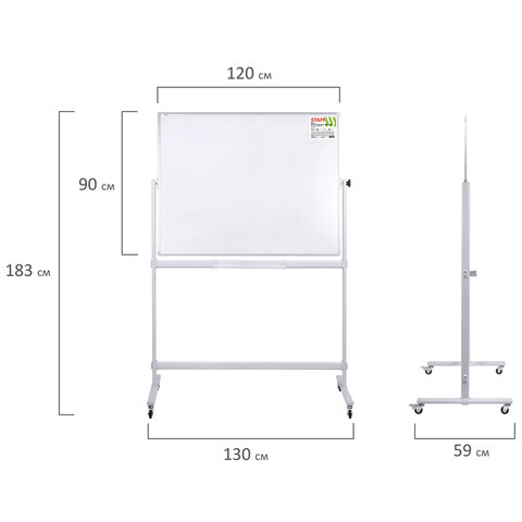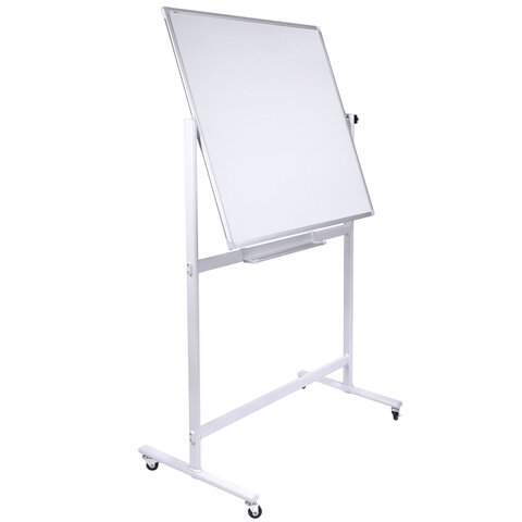 Лаковое покрытие предназначено для письма специальными маркерами для белой доски. Металлическая поверхность позволяет размещать информацию при помощи магнитов. Вращается в горизонтальной плоскости на 360°. Перемещается на колесиках. Элементы крепления и лоток для принадлежностей входят в комплект. Размер доски – 90х120 см. Перед началом работы необходимо удалить защитную пленку с рабочей поверхности доски.