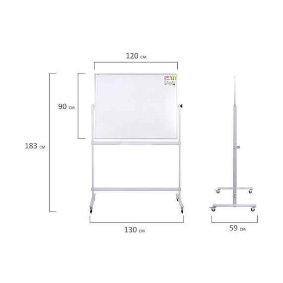 Доска магнитно-маркерная НА СТЕНДЕ 90х120 см, 2-сторонняя, STAFF, 238014