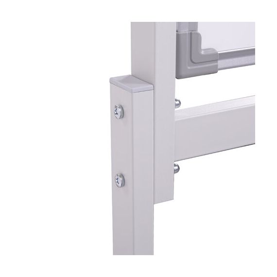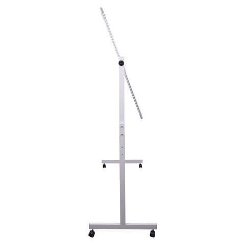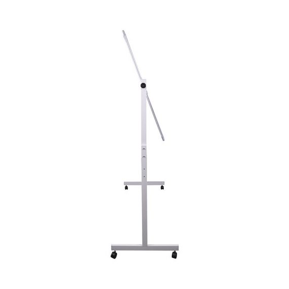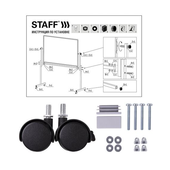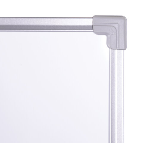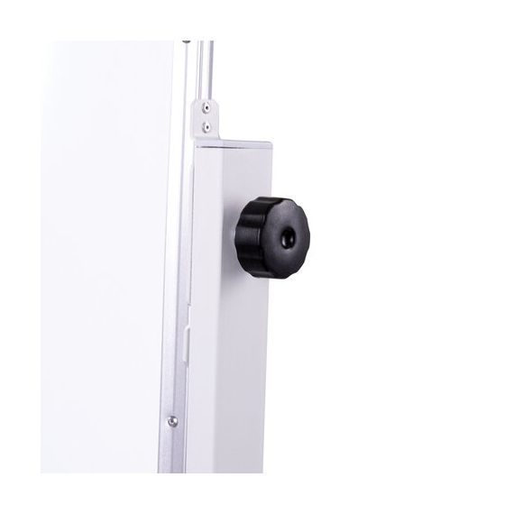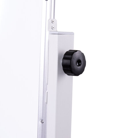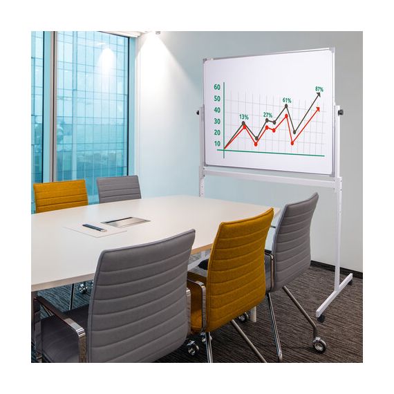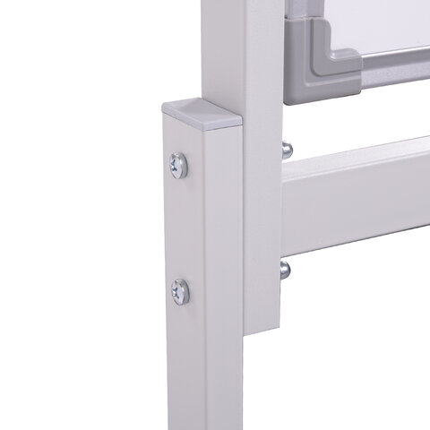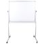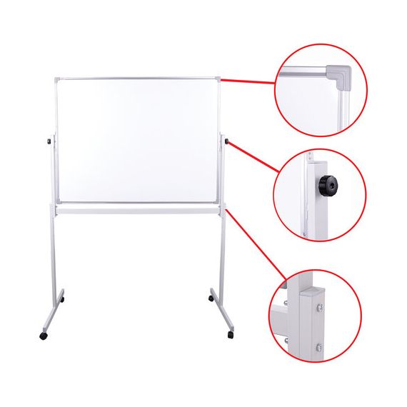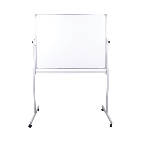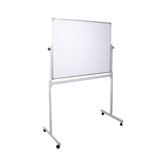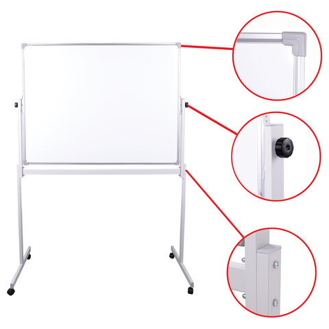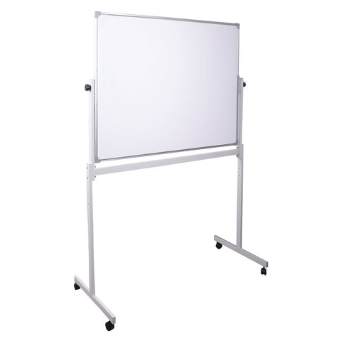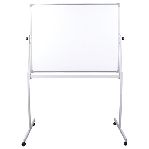 Лаковое покрытие предназначено для письма специальными маркерами для белой доски, а металлическая поверхность позволяет размещать информацию при помощи магнитов. Вращается в горизонтальной плоскости на 360°. Перемещается на колесиках. Металлическая рама придает доске необходимую прочность. Элементы крепления входят в комплект. Защитная пленка предупреждает появление царапин, потертостей и сколов на рабочей поверхности доски при транспортировке и хранении продукции (перед началом работы необходимо удалить защитную плёнку). Без лотка для аксессуаров. Размер: 90х120 см.