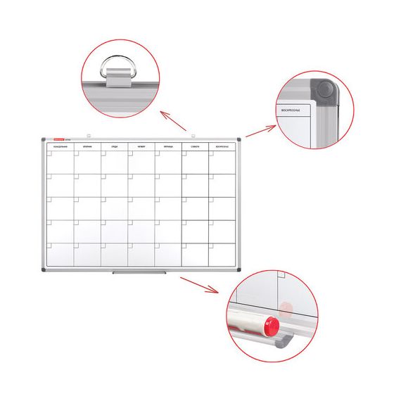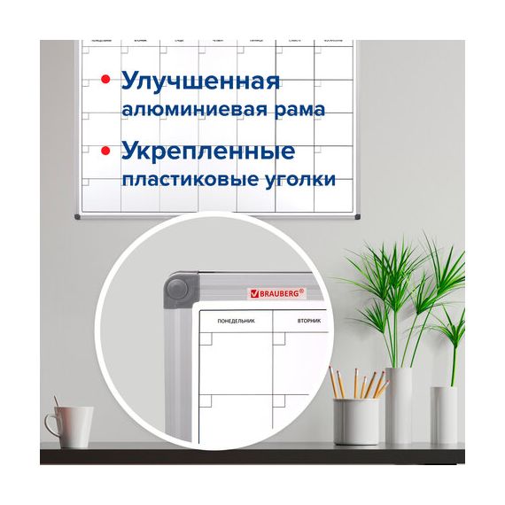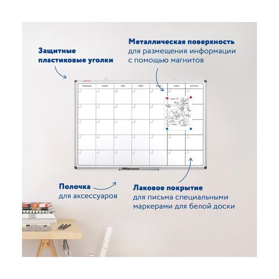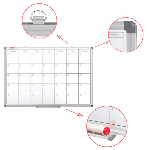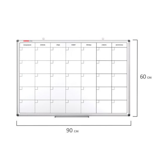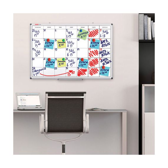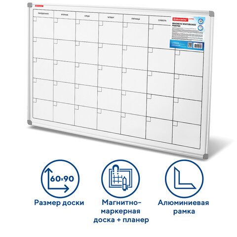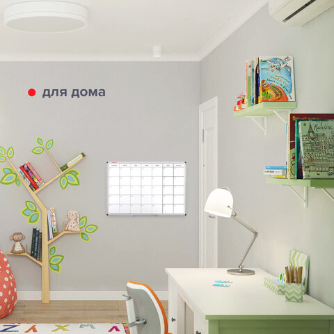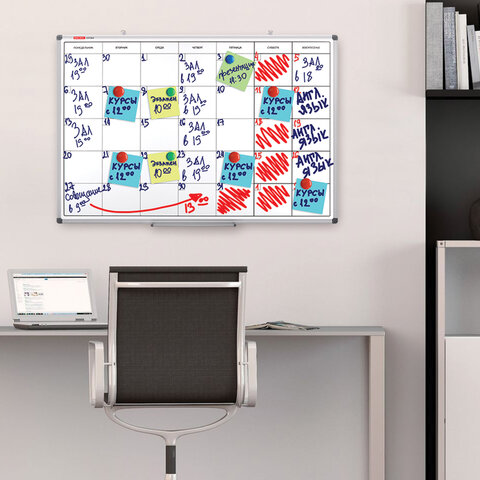 Доска-планинг НА МЕСЯЦ магнитно-маркерная 60х90 см, алюминиевая рамка, BRAUBERG "Extra", 237564