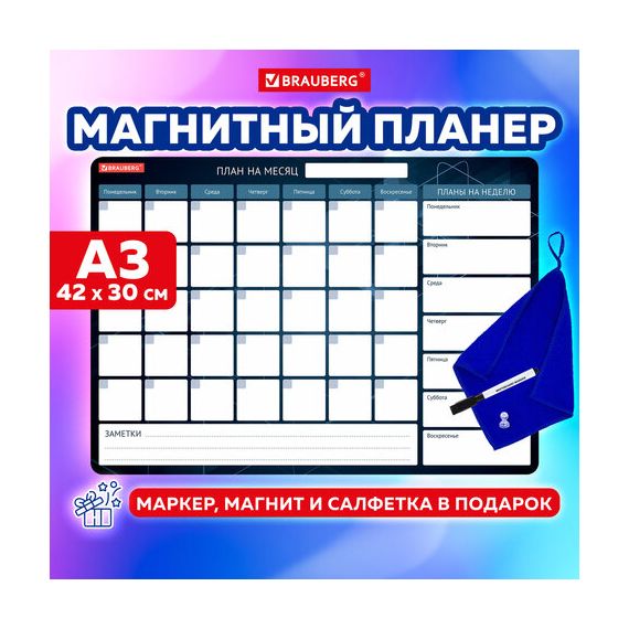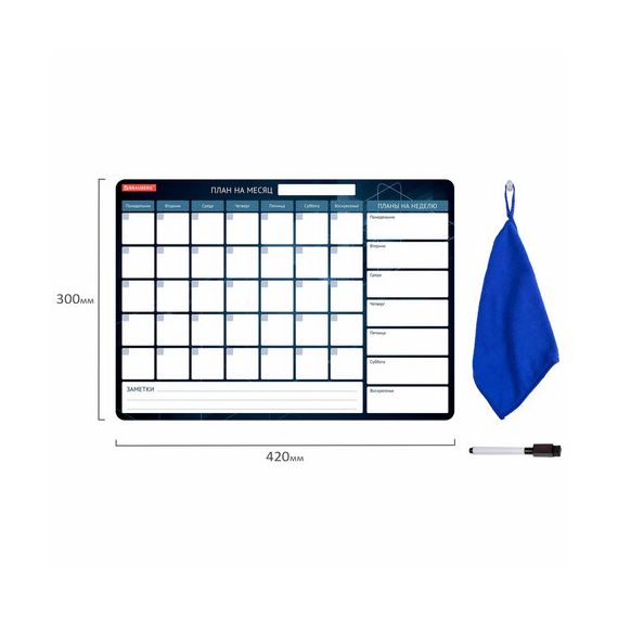 Планинг на холодильник магнитный НА МЕСЯЦ 42х30 см, с маркером и салфеткой, BRAUBERG, 237849