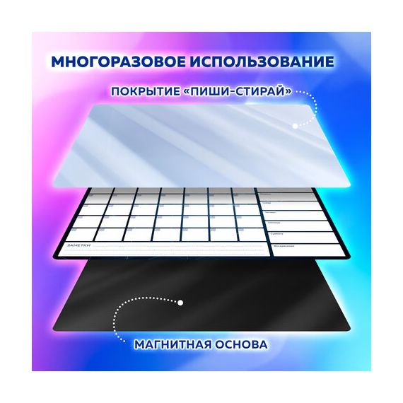 Магнитный планинг имеет многоразовую поверхность "пиши-стирай", выполненную из ПВХ.