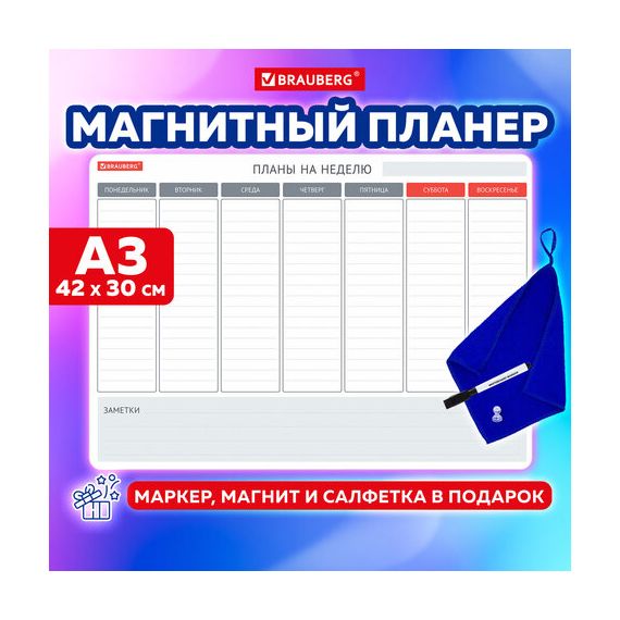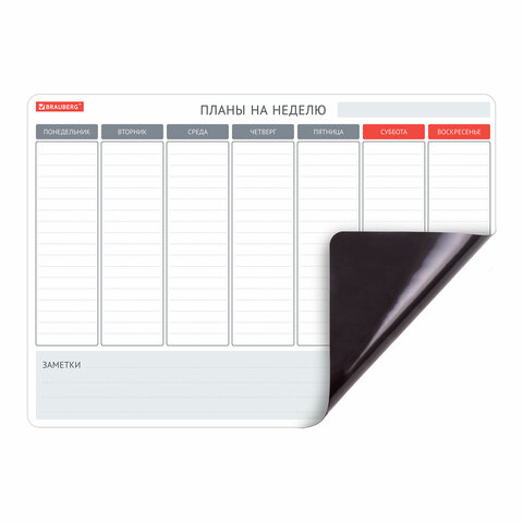 Планинг на холодильник магнитный НА НЕДЕЛЮ 42х30 см, с маркером и салфеткой, BRAUBERG, 237850