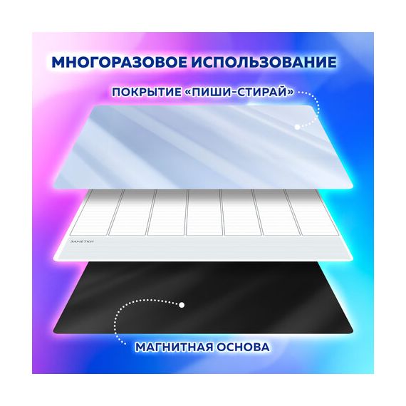 Магнитный планинг имеет многоразовую поверхность "пиши-стирай", выполненную из ПВХ.