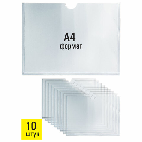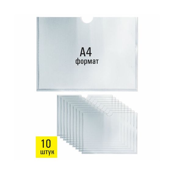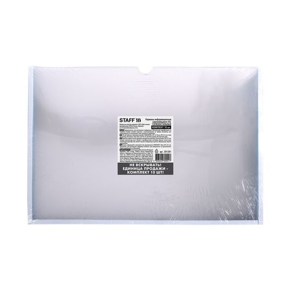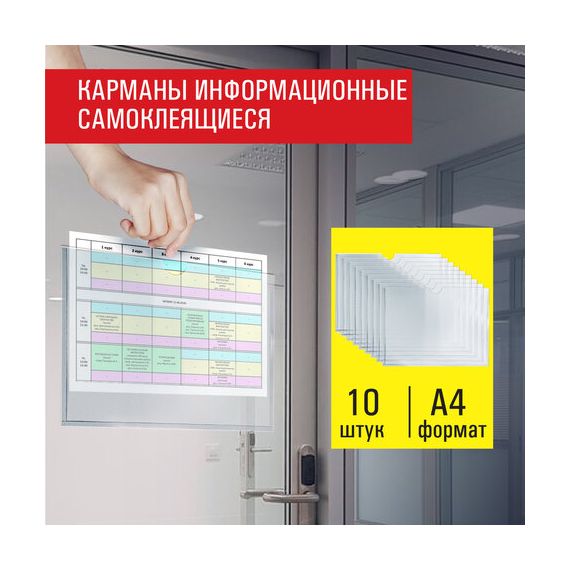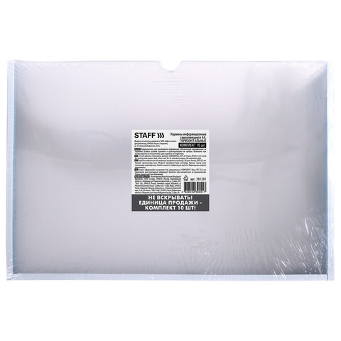 Карманы информационные самоклеящиеся, А4, горизонтальные, КОМПЛЕКТ 10 шт., ПЭТ, 0,3 мм, STAFF, 291281