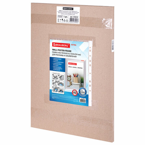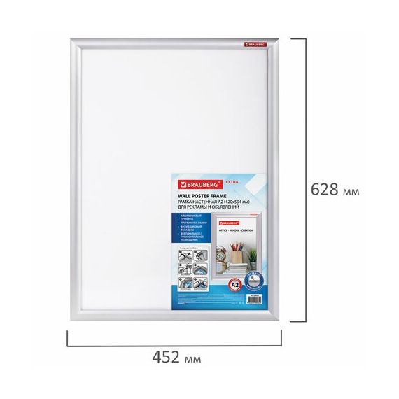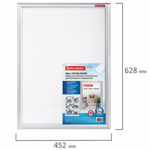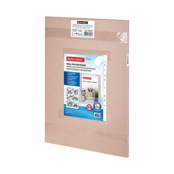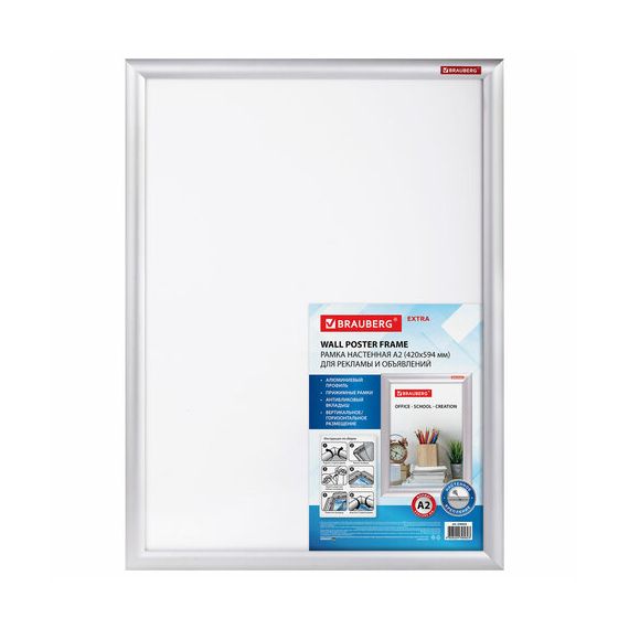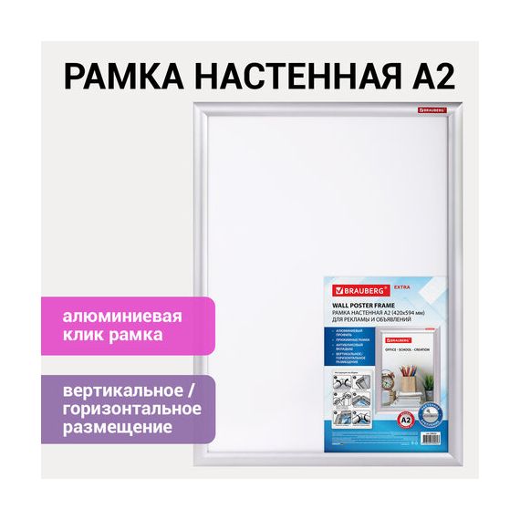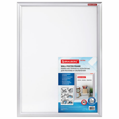 Рамка настенная с "клик"-профилем А2 (420х594 мм), алюминиевый профиль, BRAUBERG "Extra", 238222