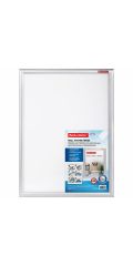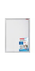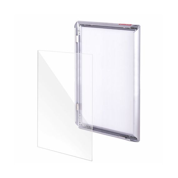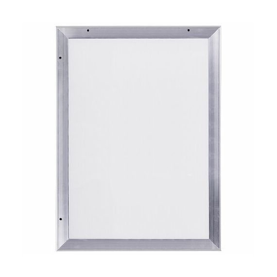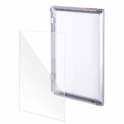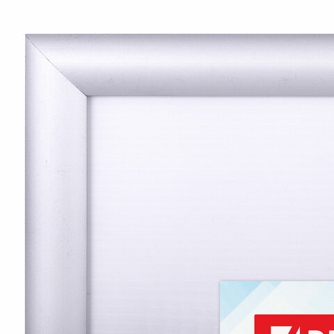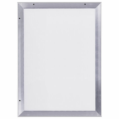 Профиль рамки изготовлен из анодированного алюминия. Изменяемое расположение – книжное или альбомное. Благодаря прозрачному антибликовому покрытию документы отчётливо видны посетителю, не мнутся и не загрязняются в течение всего эксплуатационного периода. Рамка крепится к стене через специальные отверстия при помощи дюбелей и саморезов. Элементы крепления входят в комплект. Максимальная высота вставляемого листа – 420 мм, максимальная ширина вставляемого листа – 297 мм. Цвет рамки – матовое серебро. Ширина багета – 2,5 см.