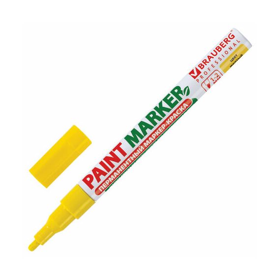 Маркер-краска лаковый (paint marker) 2 мм, ЖЕЛТЫЙ, БЕЗ КСИЛОЛА (без запаха), алюминий, BRAUBERG PROF