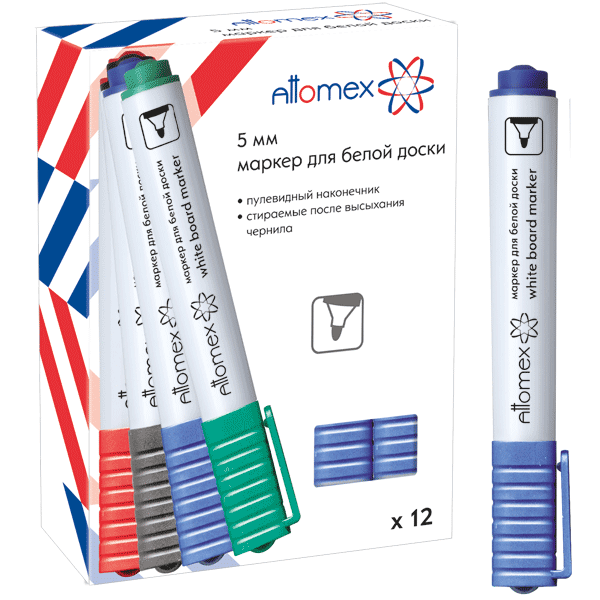 Маркер для белой доски "Attomex" круглый корпус с клипом, пулевидный наконечник, ширина линии 5 мм,