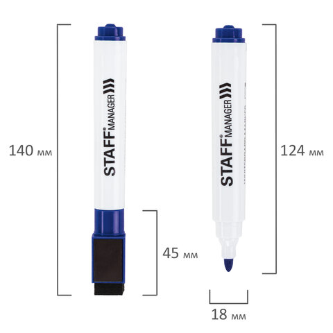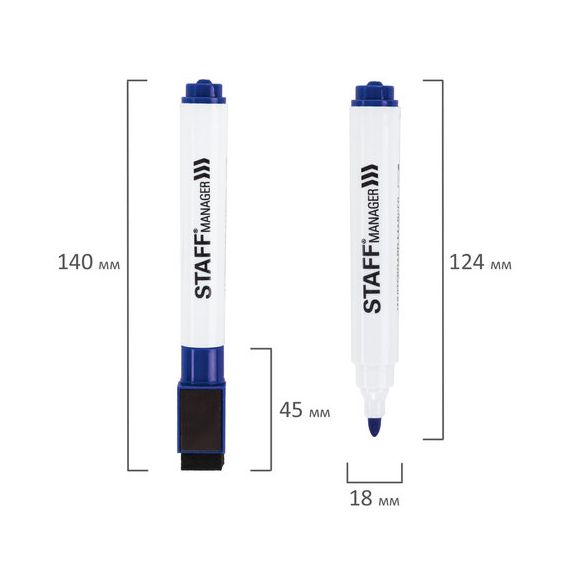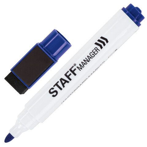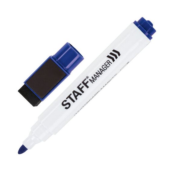 Маркер для белой доски на магните со стирателем, СИНИЙ, наконечник 3 мм, STAFF, Китай