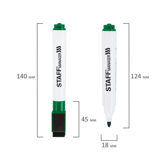 Универсальный стираемый маркер на магните со стирателем STAFF "Manager" предназначен для использования на белых досках с магнитно-маркерной поверхностью. Незаменим для проведения презентаций, совещаний, уроков.