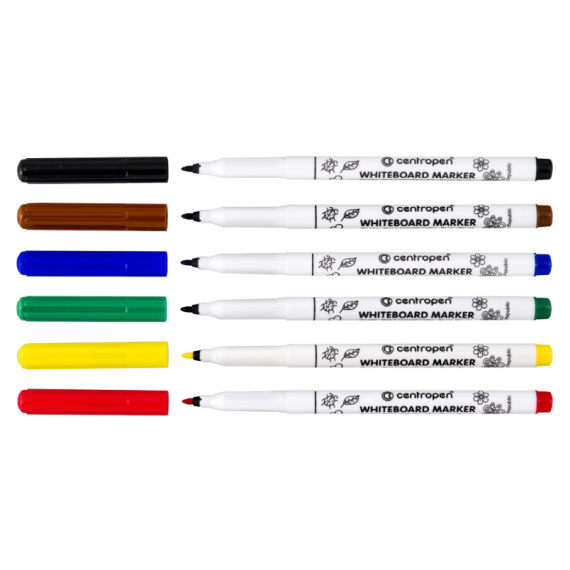 Маркеры стираемые для белой доски НАБОР 6 шт., 6 ЦВЕТОВ, CENTROPEN "Dry-Wipe", 1-2 мм