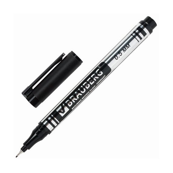 Маркер для CD и DVD BRAUBERG, ЧЕРНЫЙ, супертонкий металлический наконечник, 0,5 мм