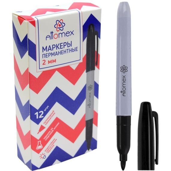 Маркер перманентный "Attomex" круглый корпус, пулевидный наконечник, ширина линии 2 мм, черный