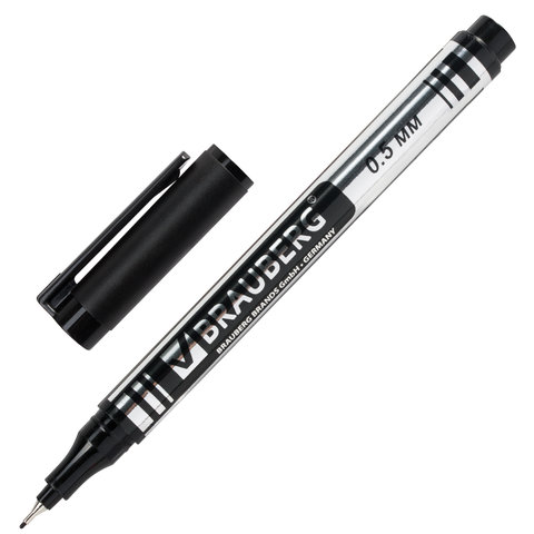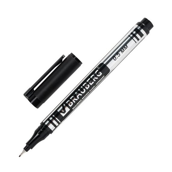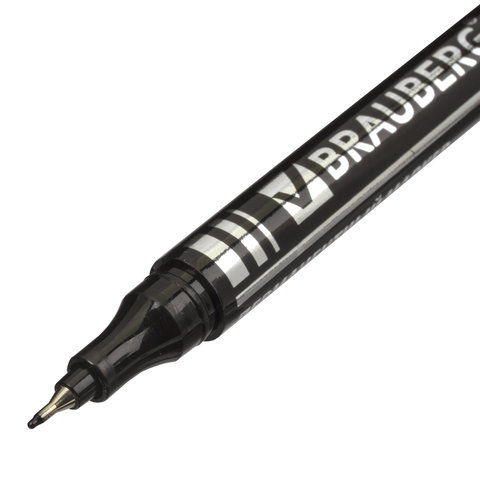 Маркер перманентный BRAUBERG "Jet", ЧЕРНЫЙ, 0,5 мм супертонкий металлический наконечник