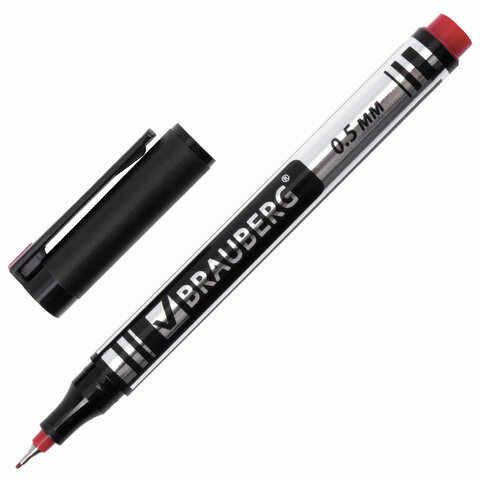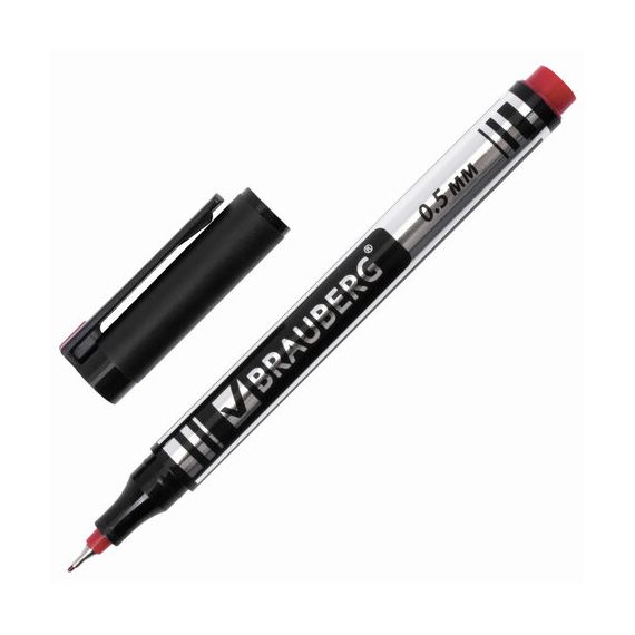 Маркер перманентный BRAUBERG "Jet", КРАСНЫЙ, супертонкий металлический наконечник 0,5 мм