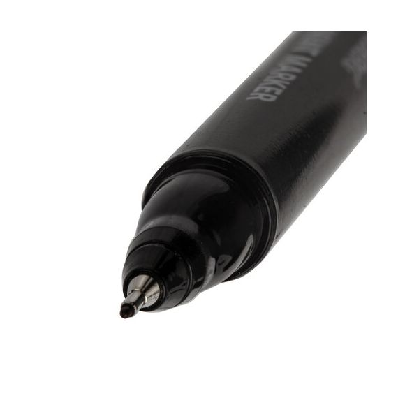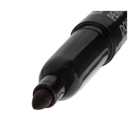 Перманентный двусторонний маркер черного цвета имеет пластиковый корпус круглой формы диаметром 12,4 мм. Особая нестираемая основа перманентного маркера обеспечивает такие качества, как стойкость к воздействию воды, ультрафиолета, низких и высоких температур. Благодаря спиртовой основе чернила быстро сохнут и не размазываются. На противоположных концах корпуса имеет два износостойких наконечника. Толщина линии письма круглого фетрового наконечника - 3 мм, тонкого металлического - 0,8 мм. Изделие не перезаправляется. Плотно закрывается колпачком, что предотвращает высыхание наконечника и чернил. Цвет колпачка соответствует цвету чернил.