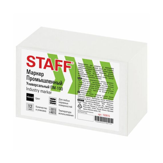 Маркер для промышленной маркировки STAFF ПМ-100 твердый, ЧЕРНЫЙ, -20 до +40С, 150815