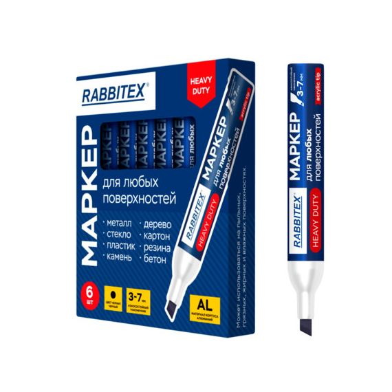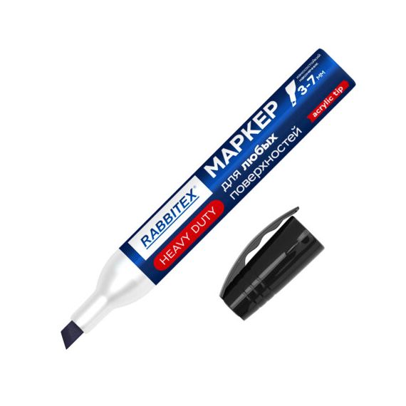 Маркер перманентный строительный для ЛЮБЫХ поверхностей металл, дерево, стекло, пластик, бетон HEAVY DUTY, ЧЕРНЫЙ 3-7 мм, RABBITEX, 152659