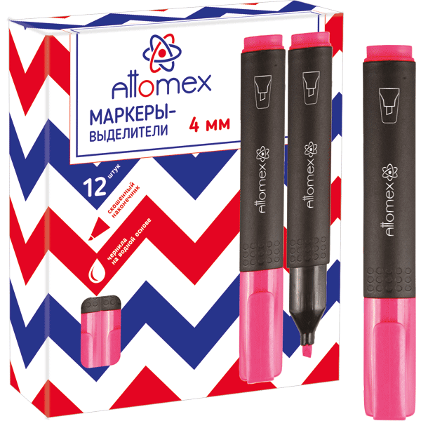 Маркер-выделитель "Attomex" плоский корпус с клипом, скошенный наконечник, ширина линии 1-4 мм, розо