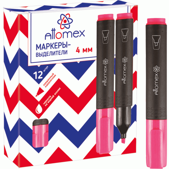 Маркер-выделитель "Attomex" плоский корпус с клипом, скошенный наконечник, ширина линии 1-4 мм, розовый